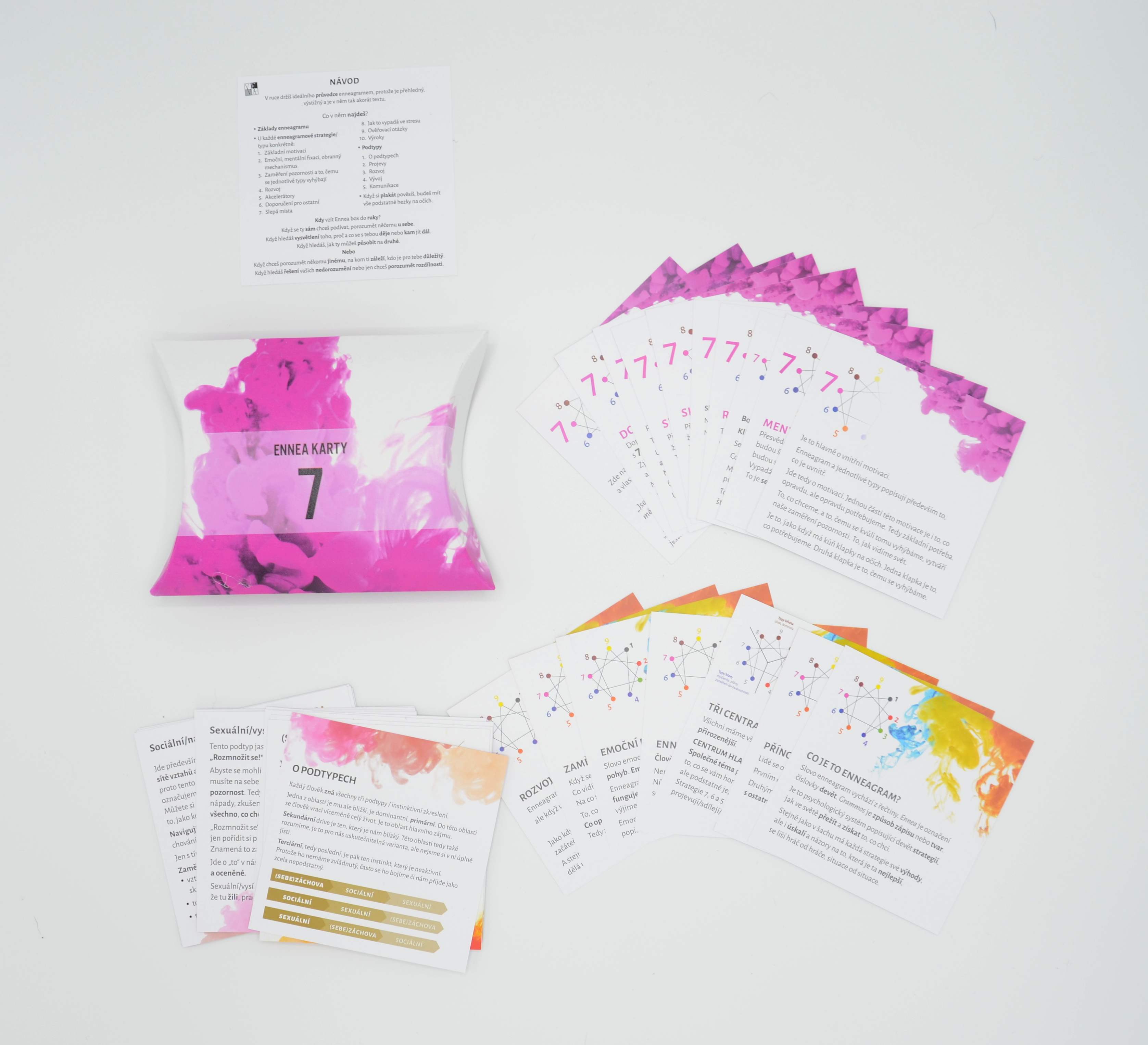 - Vše pro Sedmičku: základní potřeba a čemu se vyhýbají; motivace – emoční a mentální fixace, obranný mechanismus; bod integrace a stresu; rozvoj; afirmace k rozvoji; projevy ve stresu; slepá místa; ověřovací otázky; doporučení pro dobré vztahy; výroky.